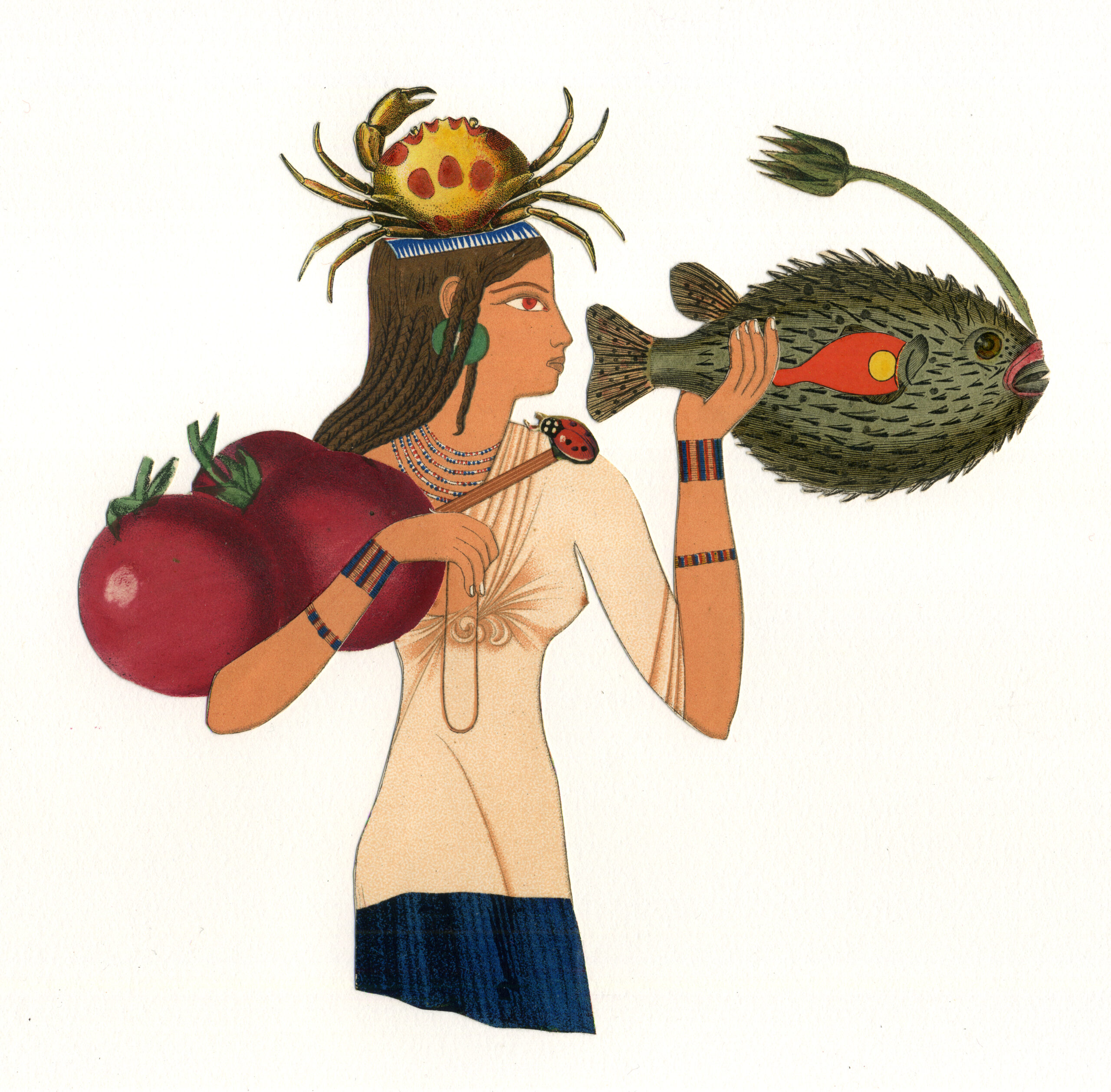 Une cinquantaine de portraits, groupes de personnages et natures-mortes conçus pour les dix-huit couvertures joliment mises en page, avec rabats et beau papier constituant une collection exceptionnelle. Tous les domaines sont abordés. littérature, gastronomie, philosophie, féminisme, sciences, botanique, etc. Colette, Moravia, Einstein, Lessing, Bocuse et bien d’autres auteurs donnent lieu à une joyeuse débauche de compositions. Couleurs vives des planches botaniques ou typographiques, chromos publicitaires, hybrides d’animaux et humains, gravures anciennes, tout cela vient s’imprimer sur l’ivoire du papier pour nous donner encore plus envie de lire et découvrir.