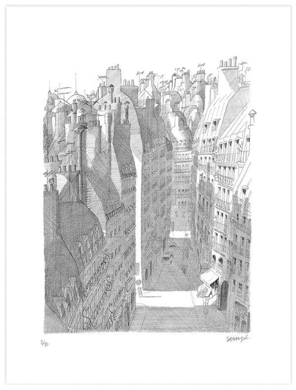 Sérigraphie éditée à 90 exemplaires signés et numérotés par Sempé. Format : 65 X 49 cm.