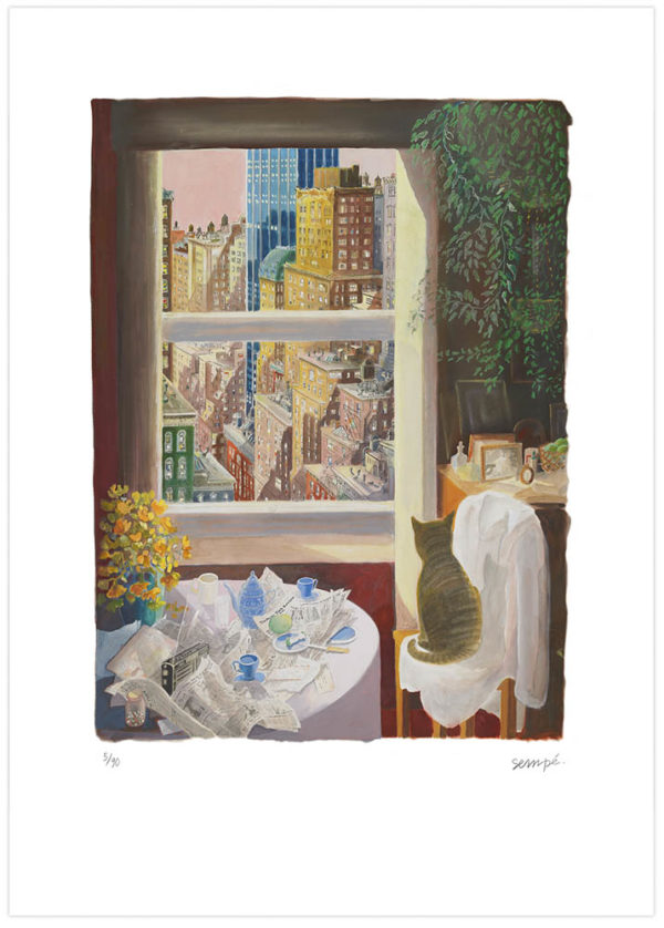 Sérigraphie « Le chat devant New York » par Sempé